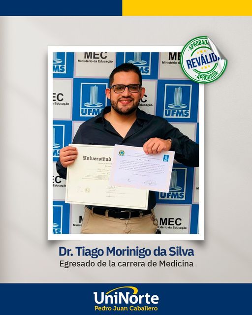 El doctor Tiago Morínigo, egresado de la carrera de Medicina de nuestra Facultad de Pedro Juan Caballero, superó exitosamente las pruebas de reválida del Examen Nacional de Médicos Brasileños. ¡Felicitaciones!